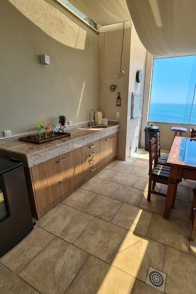 Beautifully decorated apartment, with a wonderful view of Canasjurê, and to Ilha do Francês. The place has a distinguishing characteristic, due to the tranquility and the surrounding nature. The apartment's upper floor has an outdoor deck with a swimming pool, connected to a large and covered barbecue area. All rooms, bedrooms, living room, kitchen and barbecue area overlook the sea. Quiet building, with 3 floors. At the same time, it is close to restaurants and shops in Jurerê and Canasvieiras. 1.8 km from Jurerê.