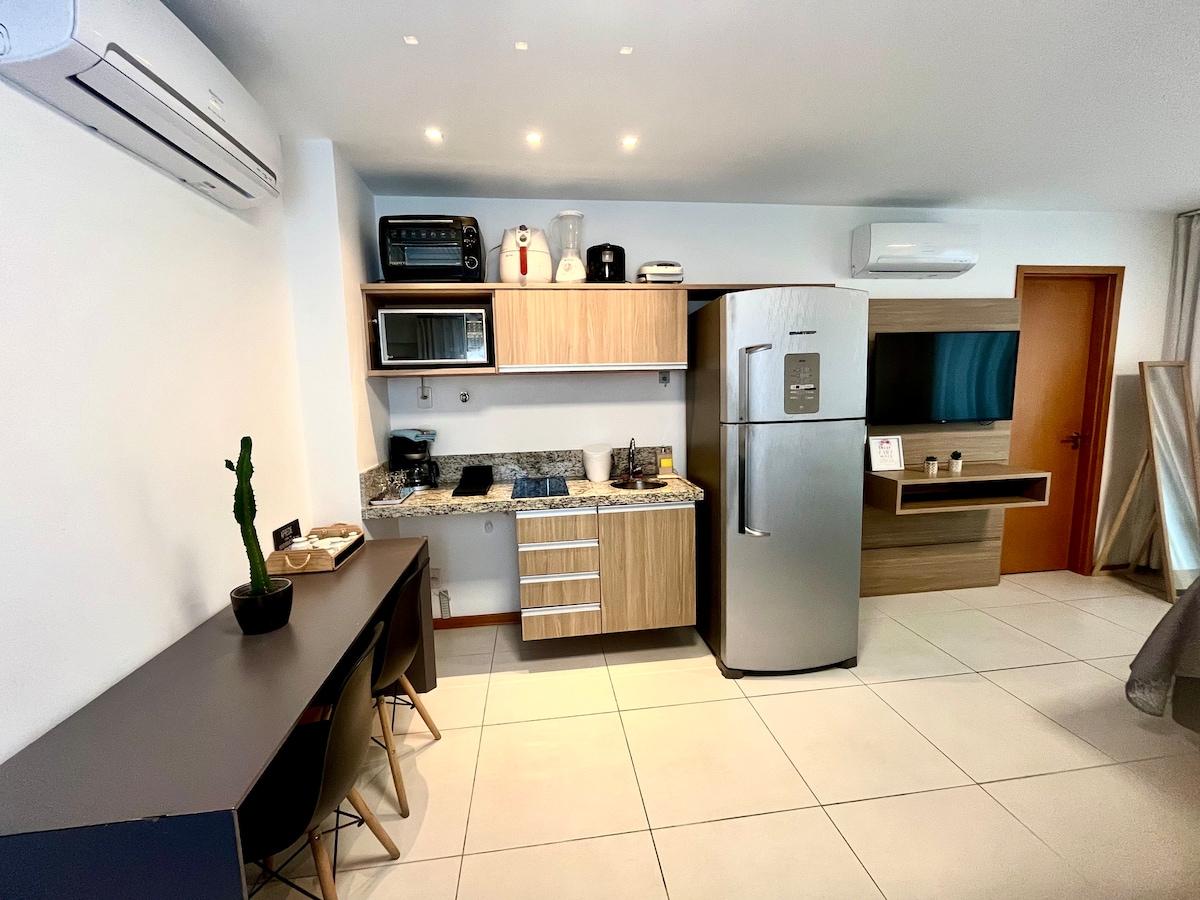 New, Modern and Stylish! Your stay in the best neighborhood in the city with an excellent location 50 meters from the beach, surrounded by restaurants, shopping malls, supermarkets, pharmacies, bars and all the shops and services in the region. Easy access to ocean beaches and the city center. Property with Wi-Fi, TV (Netflix), double bed, sofa bed, table and closets. New building with valet services (free). Ideal for travelers, executives, couples interested in shopping, tourism, gastronomy and etc.
