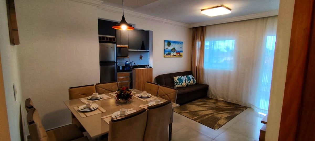 Beautiful 2-bedroom apartment + 1 en-suite, all with air conditioning. Located just 50 meters from Piçarras beach, quick access to other beaches in the area and Parque Beto Carreiro. The apartment is spacious and airy, has an integrated barbecue, television in the living room, laundry with washing machine, full kitchen, beach chairs and the condominium has a garage for 1 car with an electronic gate. Payment can be made in 6 installments without interest.