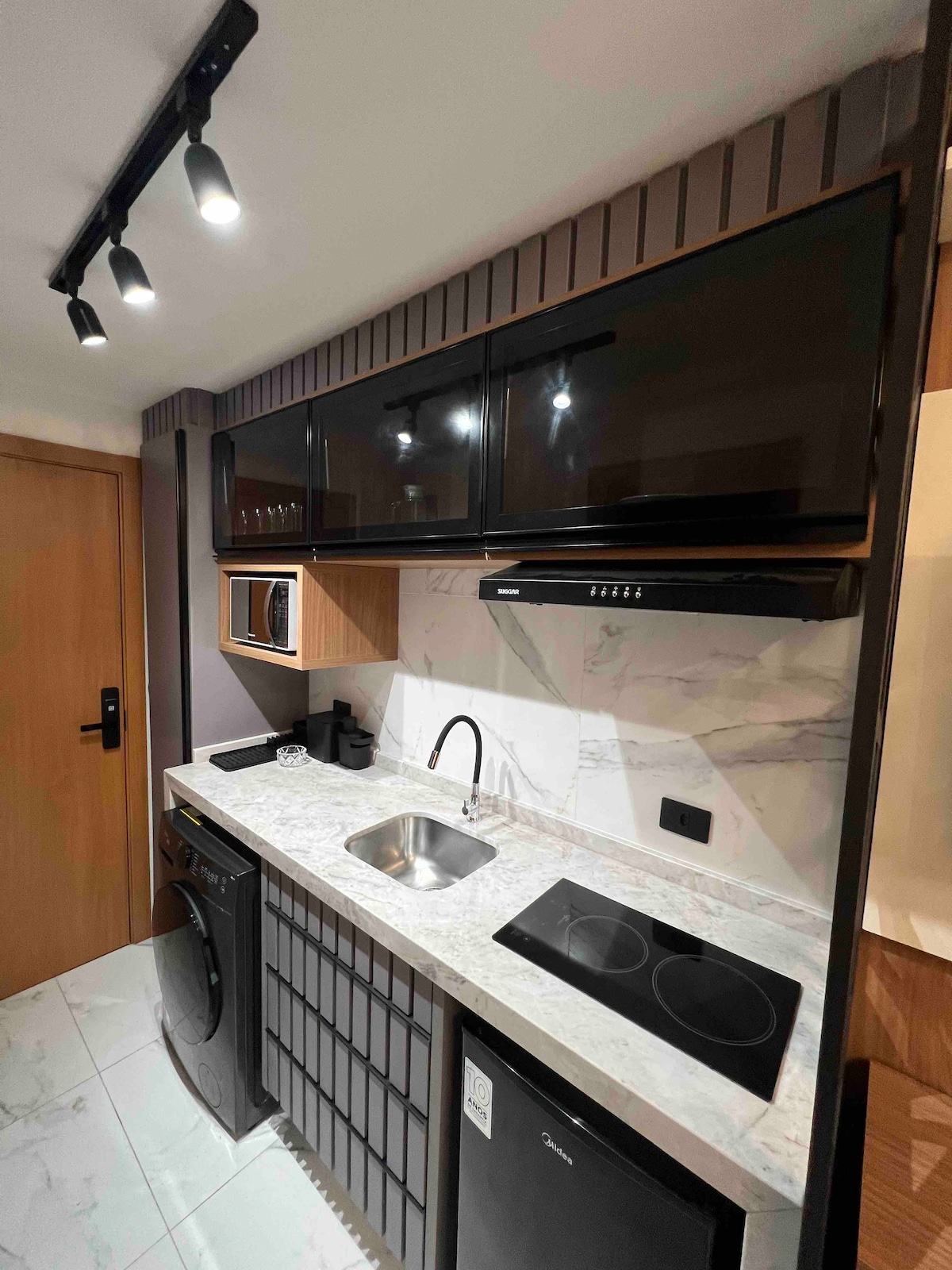 Come and enjoy comfortable and friendly accommodation on the seafront in Matinhos. Located on the seafront avenue, practically with your feet on the sand. This beautiful Studio offers: • Air conditioning; • Smart TV; • Minibar; • Microwave; • Electric cooktop; • Oven; • Electric Kettle; • Electric sandwich maker; • Blender; • Hairdryer; • Iron; • Guitar; • Kitchen utensils. We do not provide bath towels or bed linen, guests must bring them.