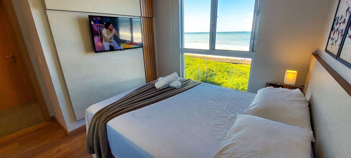 Full Home Club facing the sea. Finely decorated apartment, with sea view, new, with an en-suite plus two bedrooms, large balcony with charcoal barbecue in Home clube that offers a swimming pool with an infinity edge, children's pool, heated pool, wet bar, Jacuzzi, fitness center, sauna, cinema, game room, playroom, Pet space, Kids space, playground, hammock area, beach tennis court and etc. Exclusive access in front of the beach. About 15 km from Beto Carreiro World Park.