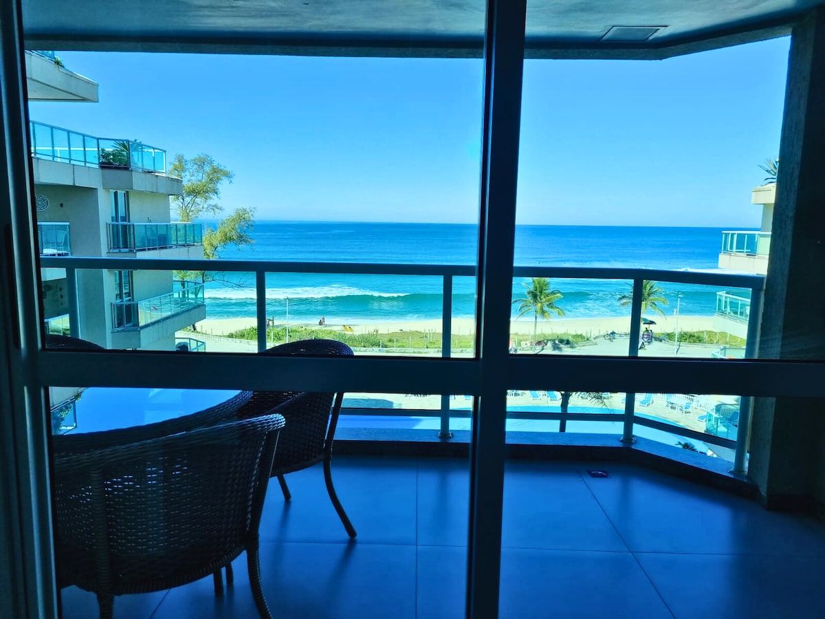 ATTENTION: MAXIMUM CAPACITY OF UP TO 3 GUESTS!!! VISITORS ARE NOT ALLOWED. PLEASE DO NOT INSIST! Wonderful flat facing the sea, on Macumba Beach, Recreio dos Bandeirantes, with complete leisure space: *Outdoor pool; *Sauna; *Whirlpool; *Fitness center; *Restaurant; *Children's playground; *Underground parking; *Boards racks in the basement and *The beach, literally, at your feet.