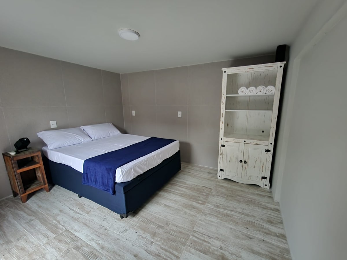 Studio in Centrinho do Campeche, next to supermarket, restaurants, conveniences, shops, bars and services. To the beach is a 15-minute walk along the walking track. Spring Ortobom Mattress Bed, 42"TV, in-room air conditioning, Buddemeyer towels, 4 mouth cooktop stove, duplex fridge, microwave, toaster, hairdryer, flat iron. On the ground floor, we have a laundry room with a washing machine and beach chairs.