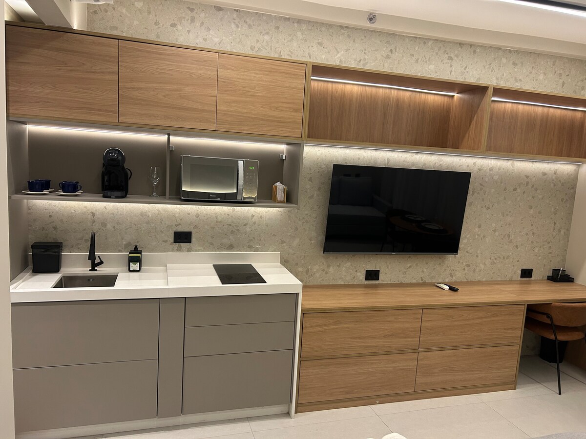 Modern and comfortable apartment in Helbor Stay Santos, ideal for those looking for practicality, comfort and an excellent location. The space is well lit, air-conditioned and fully equipped, perfect for short or long stays. A few minutes' walk away is the waterfront of Santos beach, with the largest beach garden in the world, a bike path, kiosks and bicycle rentals. Great for sunrise walks, runs or just relaxing while enjoying the sea.