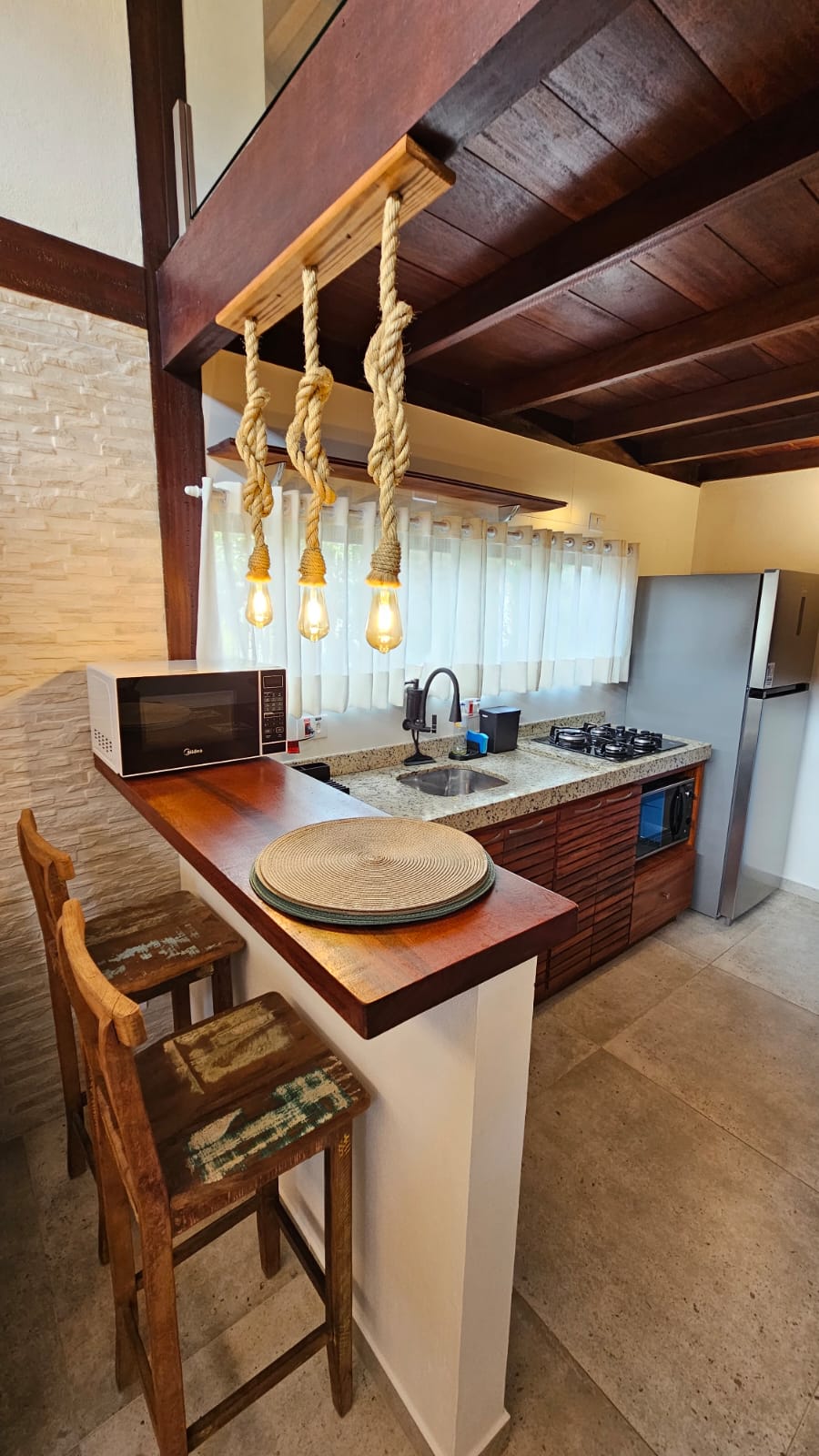 Turning the simple into an extraordinary experience. Caiçara cottage, all in treated eucalyptus and masonry, with a balcony overlooking the sea in dek, a bedroom and a mezzanine two ventilated and electric light, living room and a bathroom and a laundry area and integrated barbecue, kitchen with gas stove, refrigerator and sink and shower with gas heater. Detail: you can only arrive by boat and it is charged separately, as well as the parking that is in Paratymirim continent where you leave the car to pick up the boat.