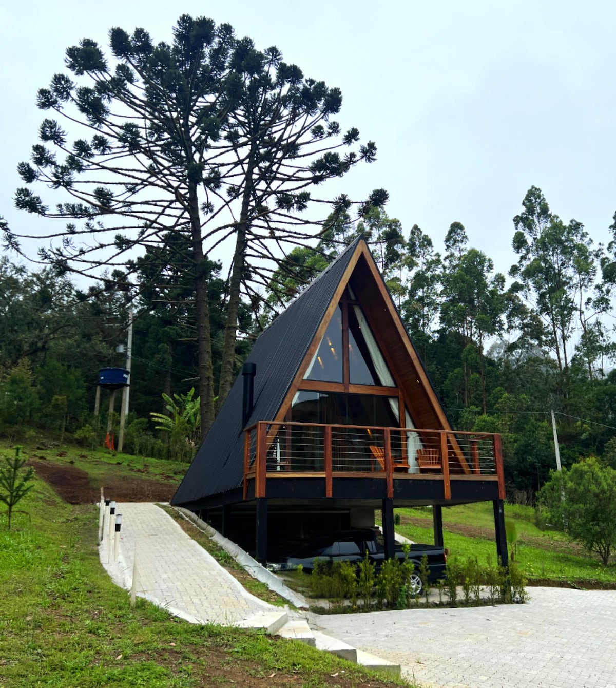 Charming A-frame cabin entirely designed and built in wood, featuring a unique style that combines elegance, comfort, and convenience. Perfect for couples but spacious enough for up to 4 people, the cabin offers a fireplace, hot tub, fully equipped kitchen, smart TV, and internet. Surrounded by lush landscapes, trails, and waterfalls, it is located in a peaceful rural area, just 35 minutes from downtown Cunha. An exclusive retreat for moments of tranquility and connection with nature.”