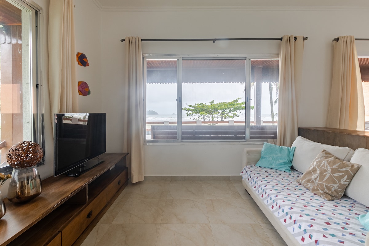 In addition to the breathtaking view, Guaraú Ocean View offers all the structure and comfort you are looking for. Gourmet barbecue with panoramic sea view, high-end kitchen, air-conditioning in all bedrooms and living room, comfortable beds, ample parking, exclusive beach access and lots of fun. Surfing, fishing, hiking, rivers, waterfalls, secret beaches and a paradise island make Guarau Ocean View one of the best destinations on the south coast to visit with family and friends.