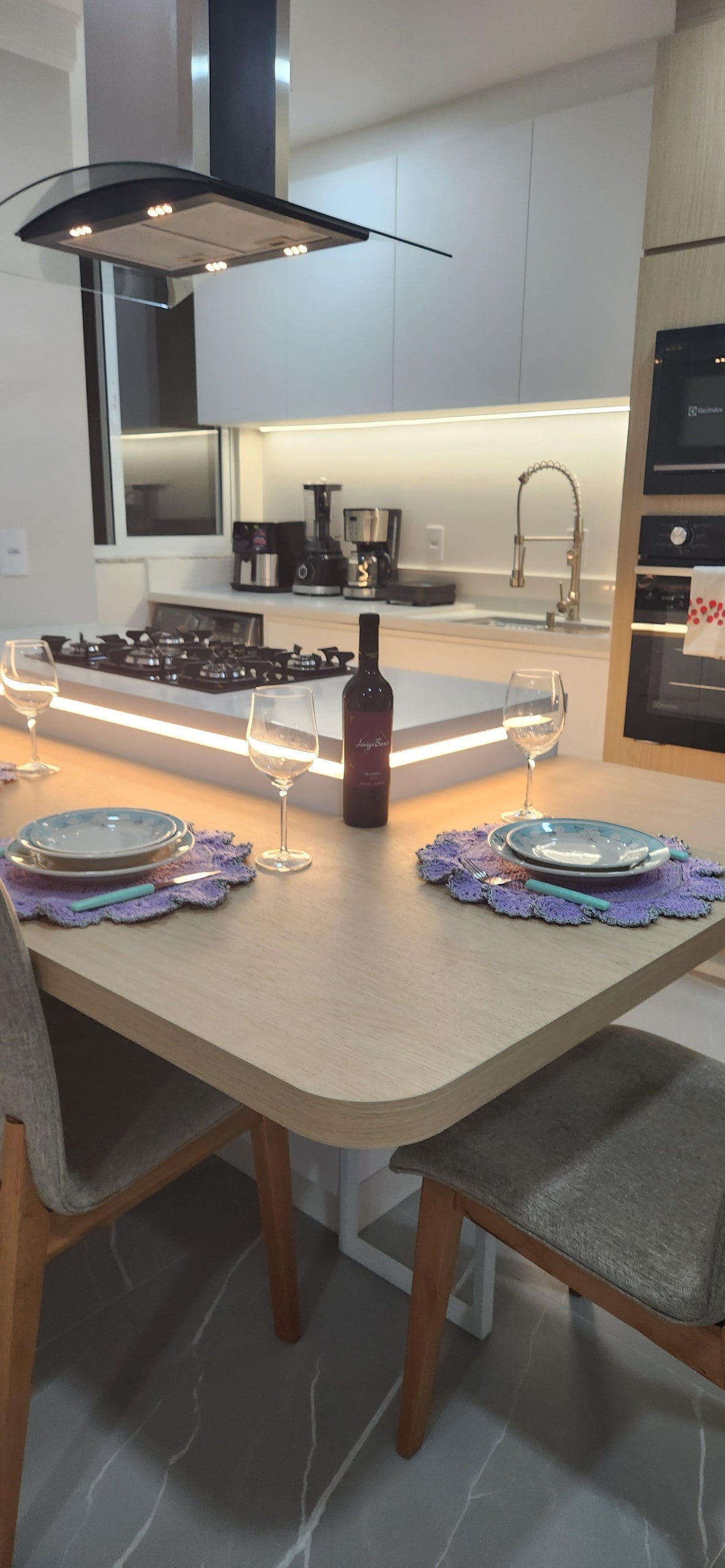 Come enjoy your precious time and fall in love with this place, you deserve the best. Furniture designed and signed by the EVVIVA company. Kitchen with white quartz island; table for up to eight people; living room with comfortable sofa bed, especially at night; bathroom with high-pressure shower; bed with queen-size mattress; balcony with gourmet barbecue grill with utensils for drinks; garage, elevator, 24-hour reception. 400-thread-count combed cotton bed linen and towels at your discretion.