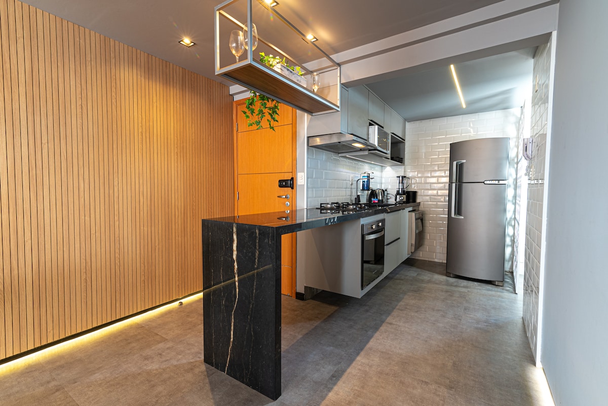 Take it easy at this unique and tranquil getaway! Flat decorated by a renowned architecture office, ensuring the maximum comfort, safety and good taste that our guests deserve. Private leisure area with Jacuzzi, SPA and sea view. Direct access to the beach, living rooms, dining room and kitchen integrated in an open concept, 2 en-suites. Condominium with heated pool, infinity edge and integrated gourmet pergola, kids space and complete leisure area, equipped and decorated.