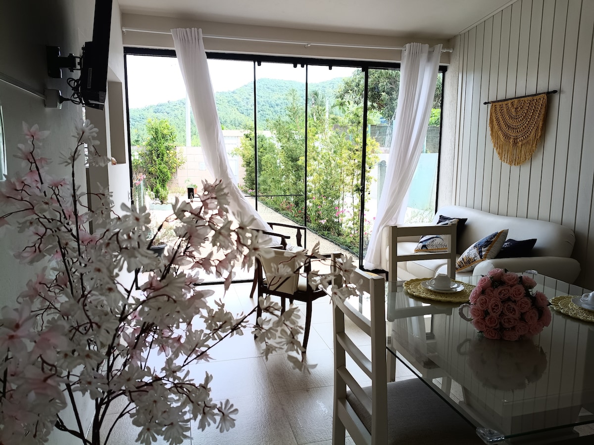 Sleeping with the sound of the sea and waking up to a beautiful sunrise between the sea and the mountains, with the sun's rays shining directly into your room is a unique experience. Make some memories in this ground-floor space, with your feet in the sand, and a transparent and tranquil sea. Located on Praia dos Ingleses Sul, ideal for guests who prioritize Nature and the BEACH. Complete apartment, in a residential complex with few residents and close to the center of Ingleses.