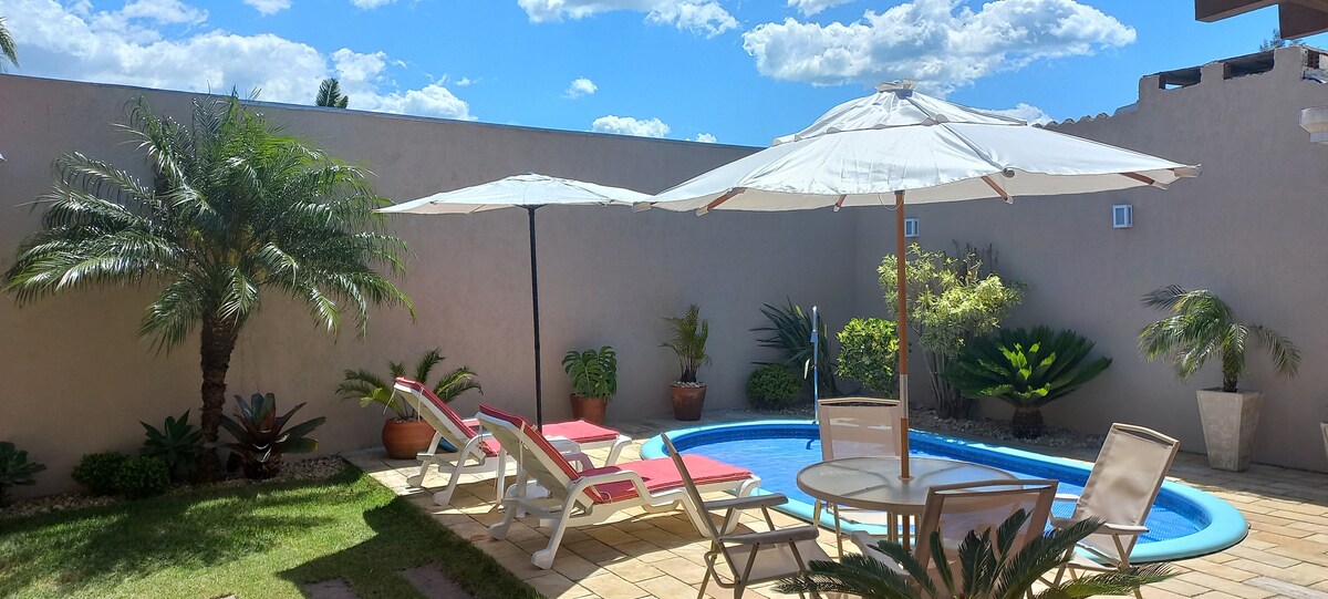 House with every comfort and very well equipped with a private outdoor area with solar-heated pool. Integrated pergola deck with modern furniture. And a ballroom equipped with access to the pool and a gourmet space with a barbecue and a full kitchen. Inside, it has air-conditioning in all the bedrooms. The living room has a fireplace, a full kitchen plus an excellent barbecue with an exhaust fan. Note: The pool only heats up with strong sun, only in the height of summer, and on a windless day.