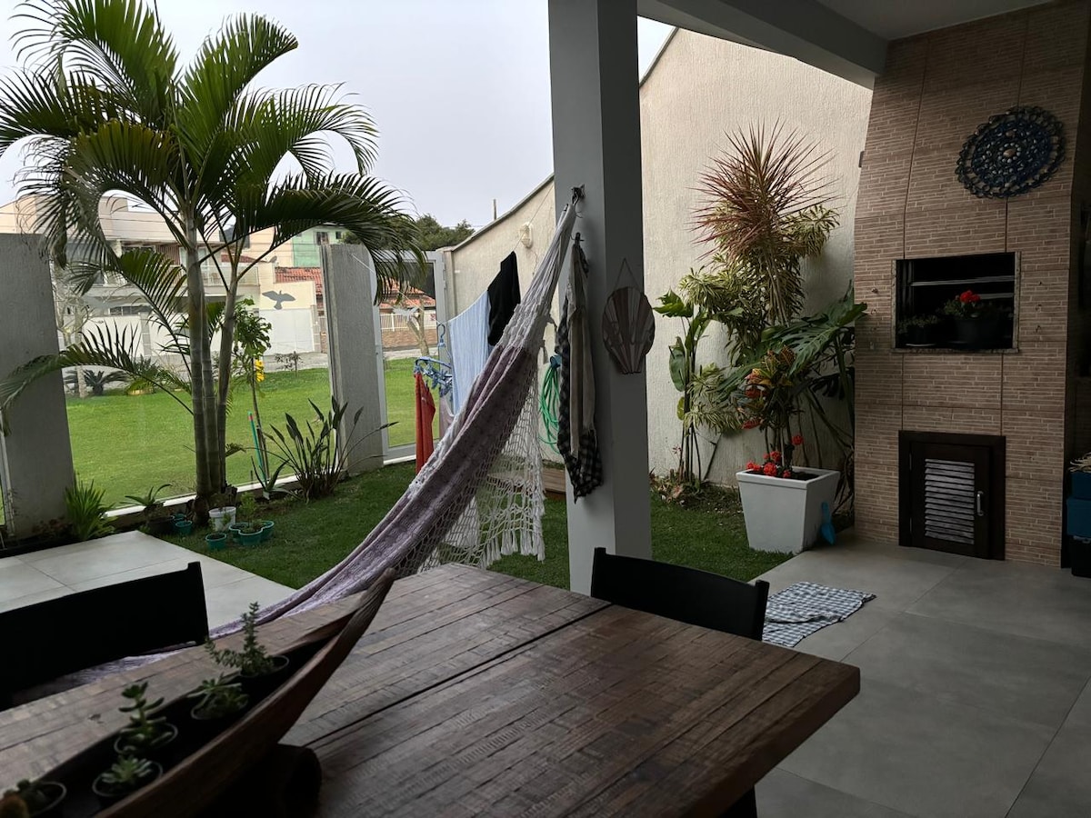 If you're looking for days of rest and fun with the family, you've found the right place! The house has 3 bedrooms, 2 9000 BTU air-conditioners. In the living room, there are 2 ceiling fans with remote control and 2 more portable fans. We have a well-ventilated barbecue area, hammock, beach chairs and a fully equipped kitchen. Smart TV and free Wi-Fi. The house is 300 meters from the calm Enseada beach, close to local shops and a garage for up to 4 cars!
