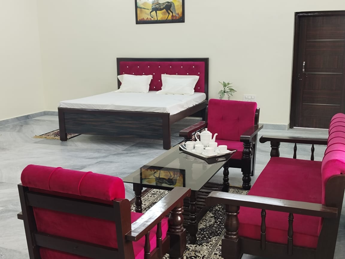 This stylish place is close to must-see destinations like Anand Bhavan, Swaraj Bhavan, Bharadwaj Ashram ,Triveni Sangam, Nagvasuki Temple ,Veni Madhav Temple and many more... We have 5 rooms and cost of each room is 3999/- In one room we can accommodate 3 guests. Add-On If you are planning a family get together or want to go for an outing we offer vintage car rides at extra cost along with one night stay at farm house 40 Km away from Prayagraj at Chakghat near Suhagi Border Madhya Pradesh.