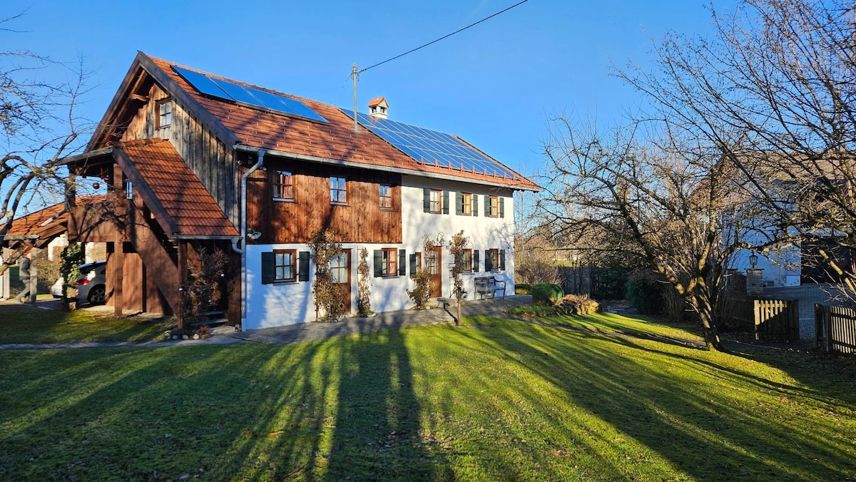 This is a cosy and original wooden house, built more than 80 years ago with a spacious garden. Experience the healthy surrounding and the big garden. No luxury estate but an authentic and cosy Bavarian family house with barbecue facility, parking areas, terrace, verandah and a garden house with Sauna. E-car owners will find a Wallbox (11kW, Type 2). Fully equipped brand new kitchen, modern bathrooms (floor heating), flat screen TV, free Wifi and a piano. New wooden floors in the whole house.