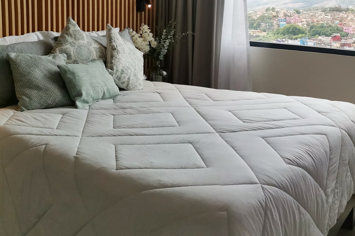 Discover an exclusive experience in this boutique suite with private jacuzzi on the terrace and panoramic views of Guanajuato. An intimate haven designed for those who value privacy, elegance and unforgettable moments. From sunset to the illuminated night, the private outdoor hot tub is the perfect setting to relax while the city unfolds in front of you.