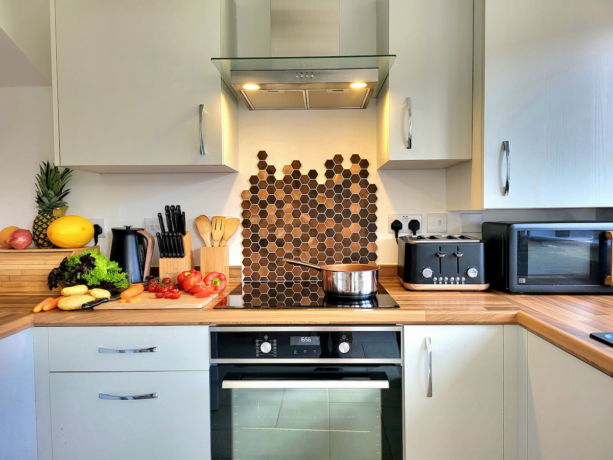 Our home is equipped with everything you need for a great stay. Comprised of a king master bedroom and two roomy single bedrooms. For extra guests, we also have a snug double sofa-bed. Our home can sleep up to 6 guests. We are pleased to offer a large modern 3 piece suite, with bath, shower and vanity. In addition to a stylish open plan kitchen, equipped with all appliances and ammenities. This house is equipped to a high standard, we want our guests to have the best stay possible!