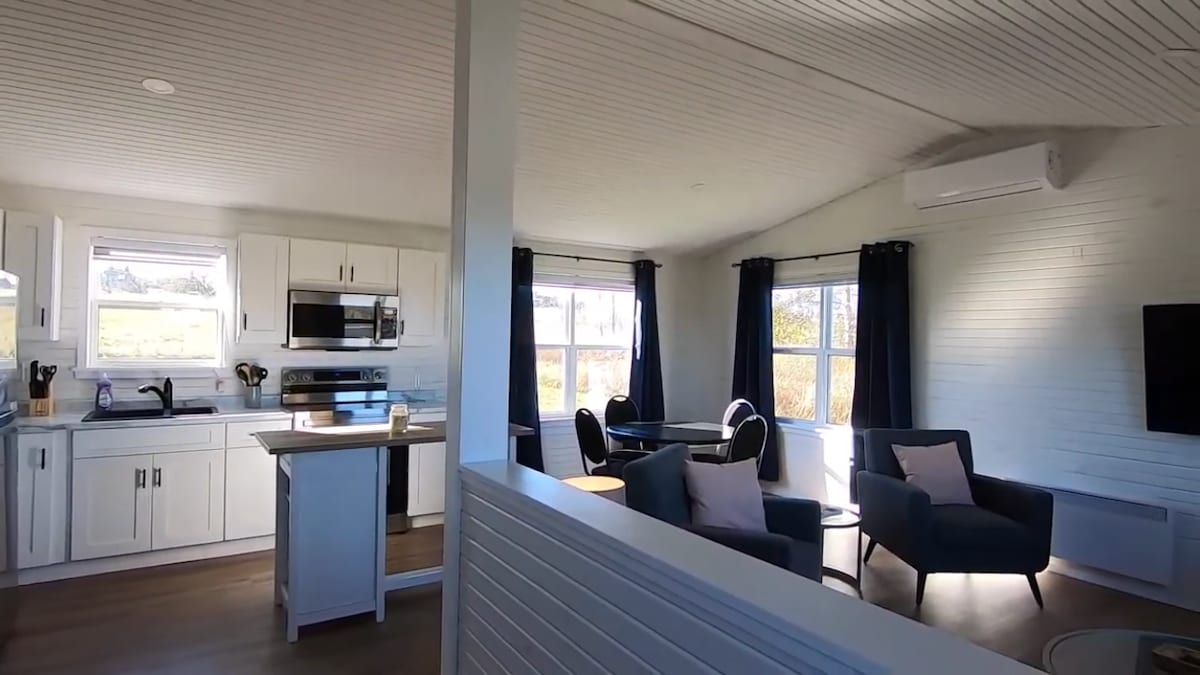 Cozy bright beach vibe cottage located on a quiet cul de sac street with a 5 min walk on a boardwalk to a beautiful 5 km blue flag beach Aboiteau ! Cottage accommodates 4 people . Features an electric fireplace with walkout to wrap around deck and gazebo. Double bed and pull out couch. WiFi, high speed internet, TV, A/C, custom made pub style table, fully equipped kitchen, propane BBQ, large walk-in shower, separate area with washer and dryer. Dart board game. Comfy indoor and outdoor furniture.