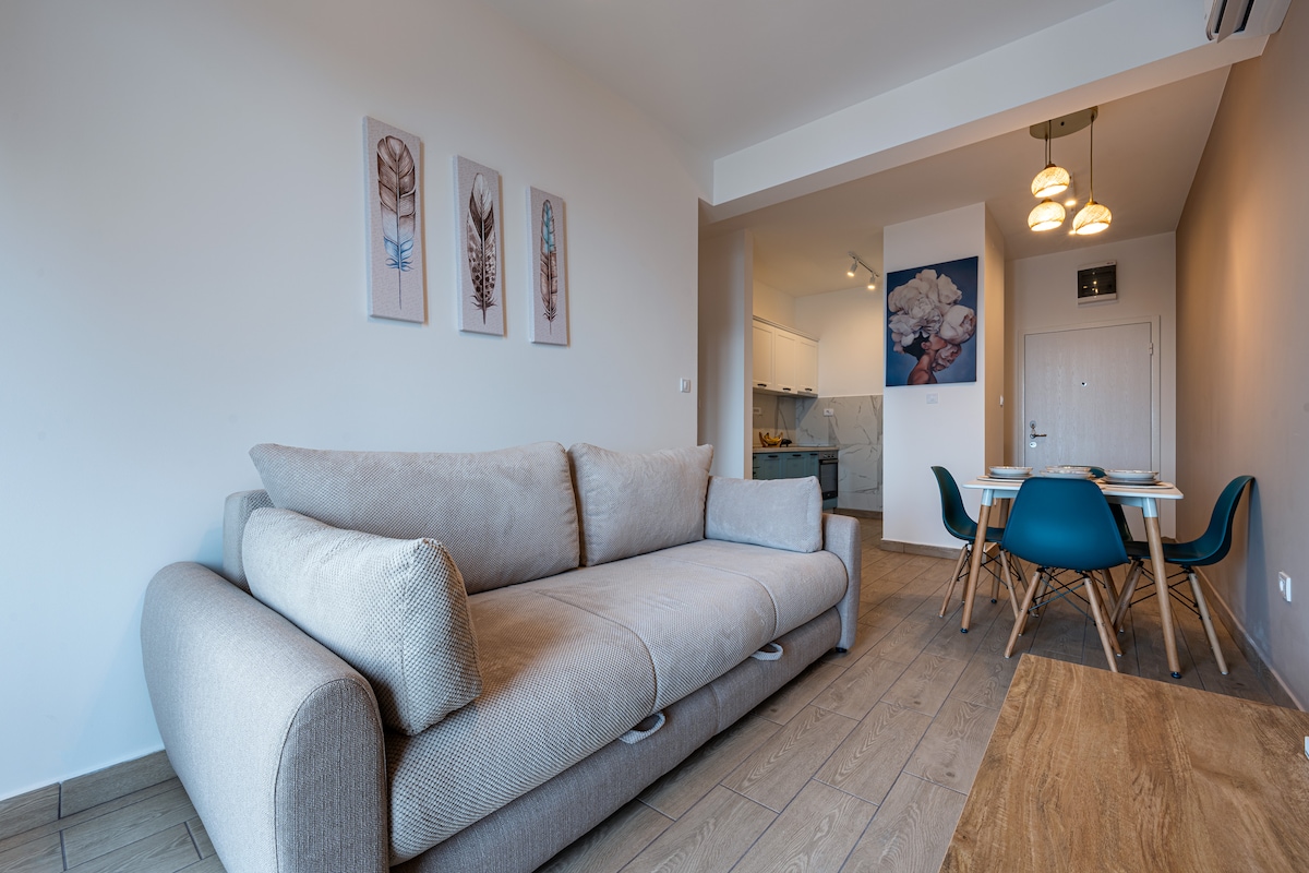 Welcome to our cozy 1-bedroom apartment in Pržno, Montenegro! With a queen-size bed and a comfortable sofa bed, it comfortably accommodates up to 4 guests. Prepare delicious home-cooked meals in the fully equipped kitchen. For those warm Montenegrin days, the apartment offers air conditioning, keeping you cool and comfortable during your stay. High-speed internet access is provided. Explore the stunning Adriatic coast and enjoy a relaxing stay in our well-equipped apartment.