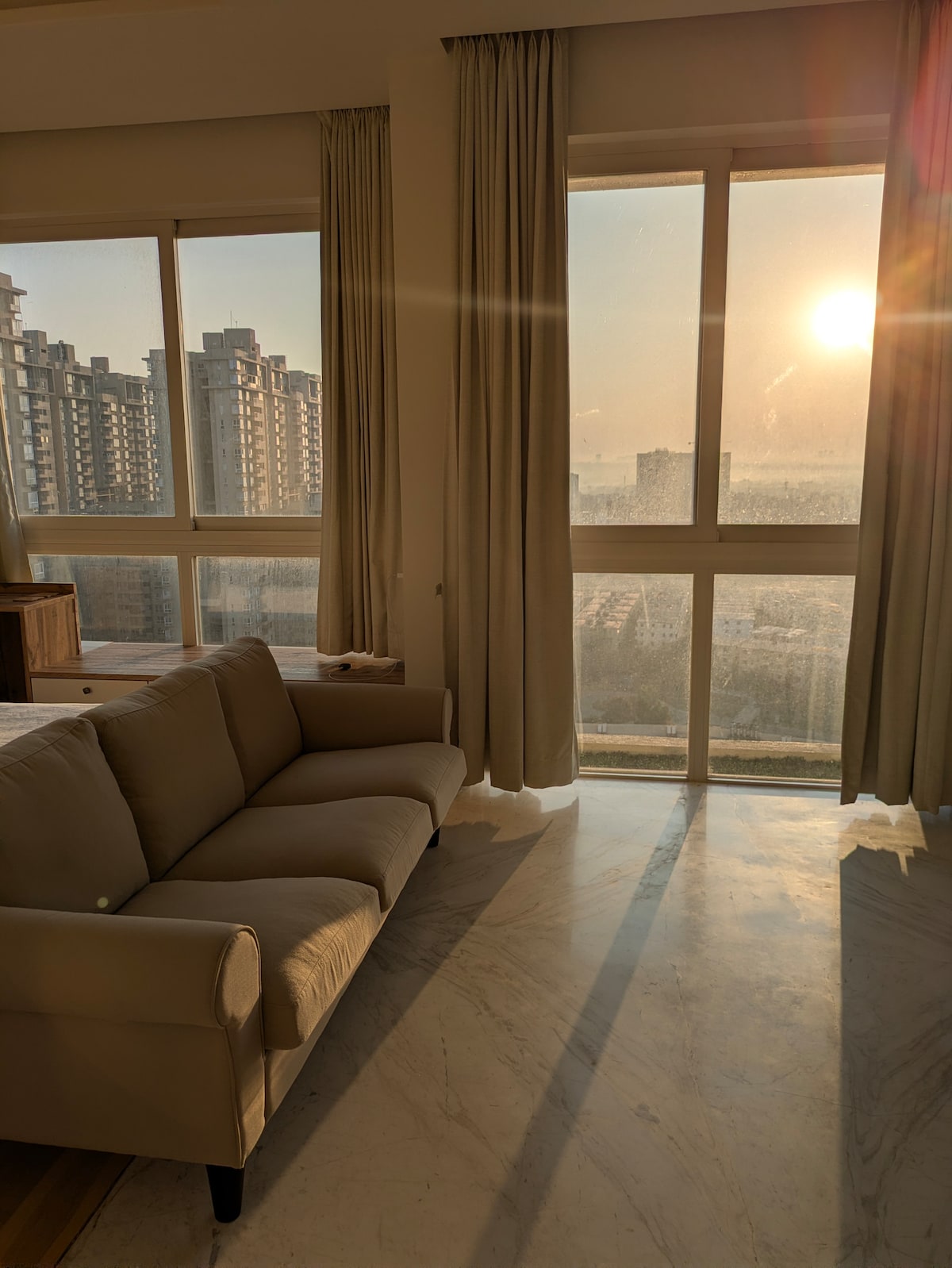 A studio apartment with a private terrace offers an amazing view of North Bengaluru. If privacy, sunlight, fresh air & a good view is what you seek to unwind. It comes with minimal amenities - good enough for a stopover & chill. Especially, travellers who seek value, a pleasant experience, & not just another hotel facility. On a clear day, you can see the magnificent Nandi Hills in the hazy horizon. And when the blue skies and ushering breeze invite you to fly a kite, go ahead, ask for it!