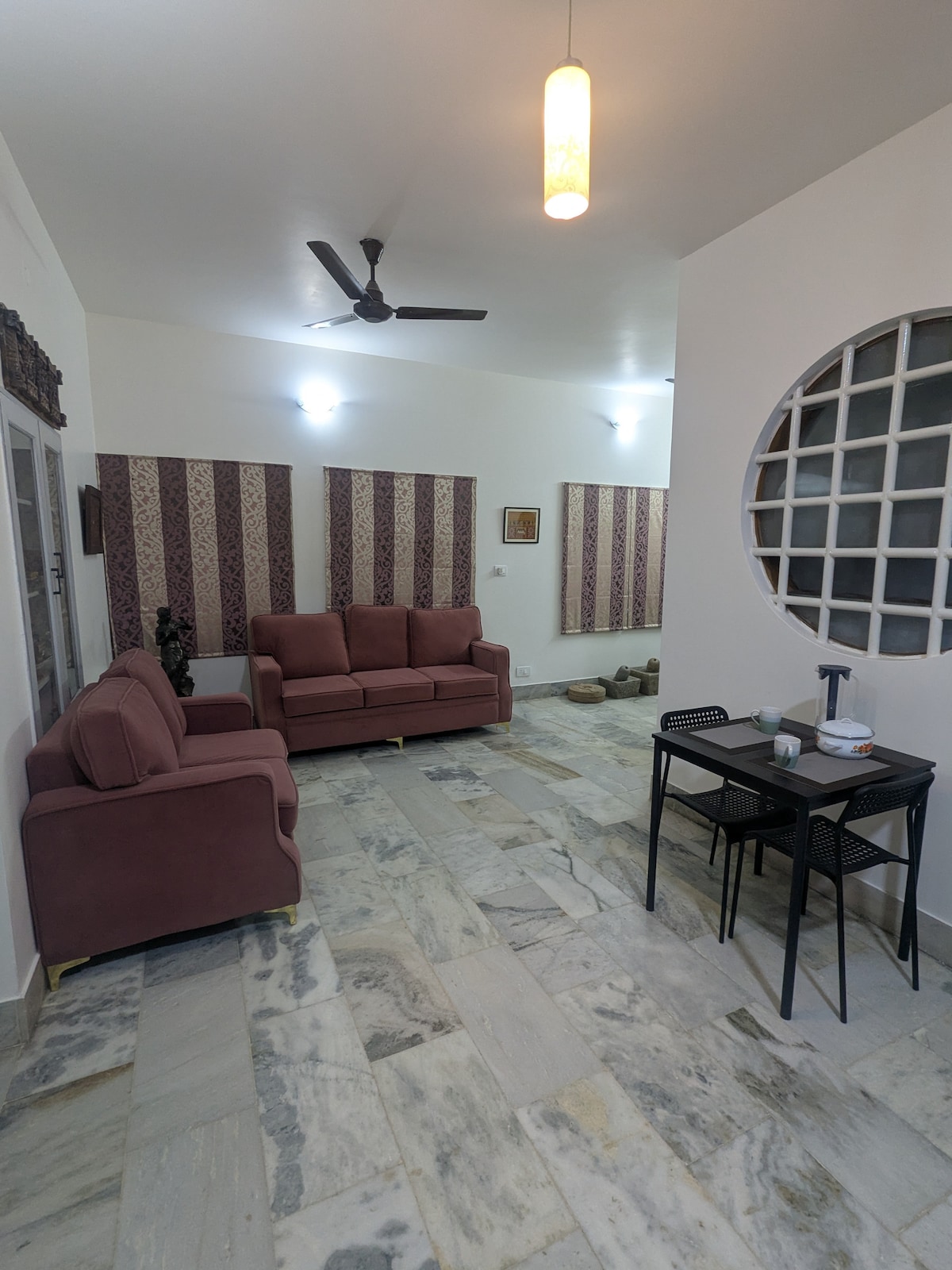 Jasmine is on the second floor of an independent house with its own direct stairway. It is a Family Styled suite designed to bring in plenty of natural light within a property full of greenery. Air-conditioned and entirely private, the space is ideal for any time of the year. This modern and fully equipped suite is a comfortable nest in a prime neighborhood in Chennai.
