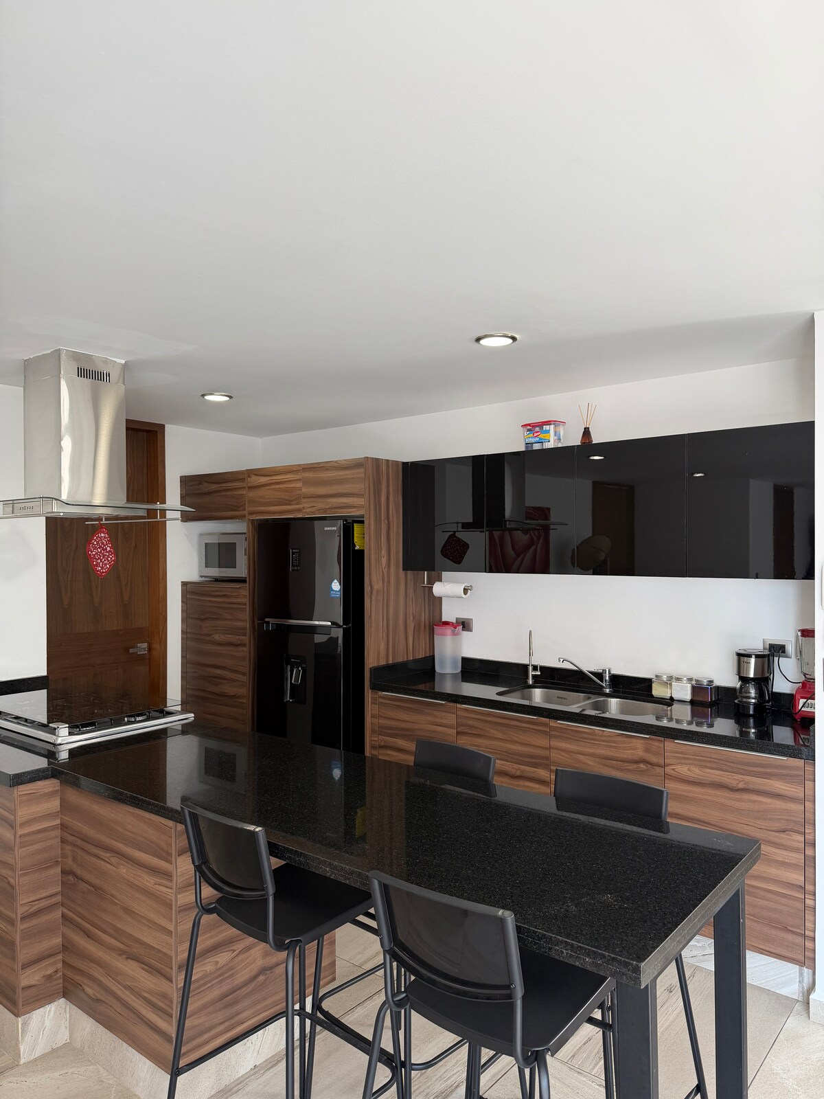 New and fully equipped apartment next to Lomas de Angelópolis and 8 minutes from the Paseo Destino Terminal, close to the most important universities in Puebla as well as shopping centers and restaurants, it has an integrated kitchen, refrigerator, microwave, coffee maker, utensils, kitchen bar with benches, 58" smart TV screen (Netflix, Prime video, Disney) high speed internet connection (60 Mbps) the apartment is located within a private complex with 24hr security.