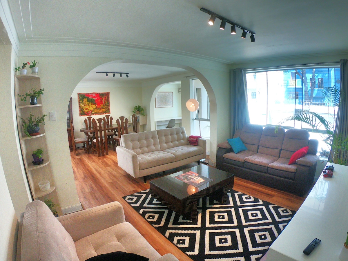 For lovers of open spaces, natural light & plants – a true oasis! Quiet street in the heart of Miraflores, just 1.5 blocks from the boardwalk with ocean views, restaurants & Larcomar. Perfect for walking, enjoying great food, art & contemplating the ocean. Has it all 165 m² 3 bedrooms 2½ baths Garden, terrace, balcony Full equipped kitchen Dining/living room with cable TV & Netflix WiFi, desk Washer & dryer Pack & Play/baby chair upon request Portable fans/heaters I love sharing local tips!