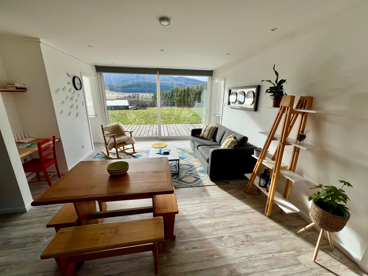 A solo 10 kms de Coyhaique conecta con la naturaleza en esta escapada inolvidable. Nuestra tiny house se encuentra en nuestro campo, un lugar privado y silencioso, donde podrás tener acceso al río, a senderos, a la patagonia en vivo !! Somos pequeños productores de lana de ovejas, lo cual hace que vivas la experiencia de alojarte en un rancho de la Patagonia, una experiencia única. Además servicios con costos extras de tinaja caliente desde agosto a mayo y viajes de pesca con mosca en temporada