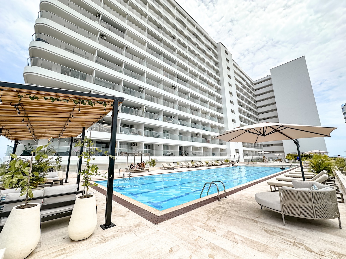 Unwind and enjoy a stunning sunset, the breeze, and panoramic views of the Caribbean Sea from your luxury Cartagena apartment with a private terrace on the 14th floor, right on the beachfront. You’ll stay at Cartagena Beach Resort & Residences, a modern project featuring expansive wet areas and strategically located right on the beachfront, next to Crespo Linear Park, the airport, shops, and less than 15 mins by Uber to the Historic Center, Getsemaní, and the city’s most beautiful beaches.