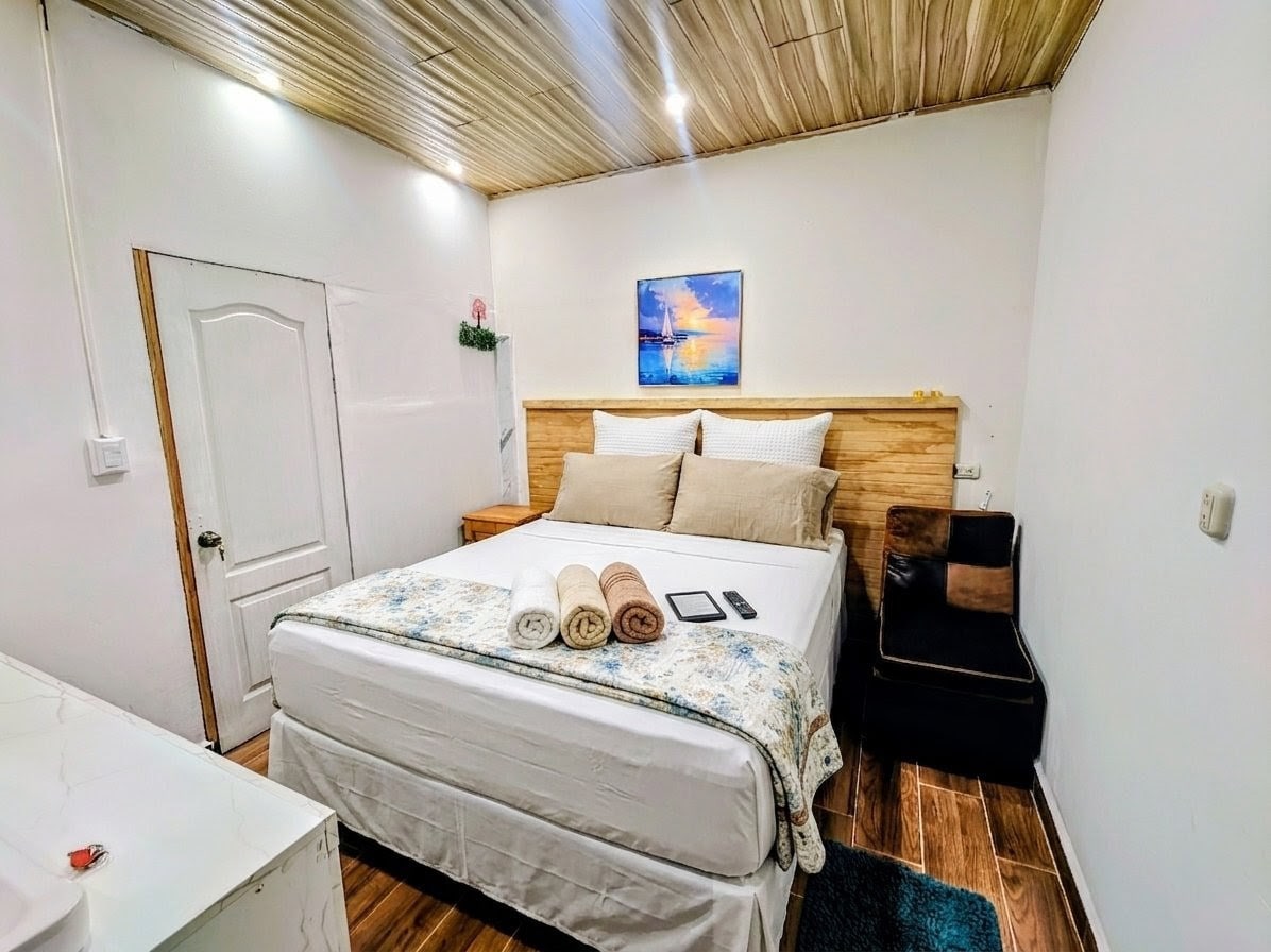 Comodidad y excelente ubicación en Santo Tomás de Castilla Acogedor departamento para hasta 4 personas, con 2 camas matrimoniales, aire acondicionado, Wi-Fi, TV, cocina equipada y baño privado con agua caliente. Incluye parqueo techado y seguro. A 5 min caminando de la playa de Santo Tomás y área de restaurantes, 3 min del parque, 15 min de Río Las Escobas y 30 min de Playa Punta Palma. Perfecto para descansar y disfrutar del Caribe guatemalteco. ¡Reserva ya!