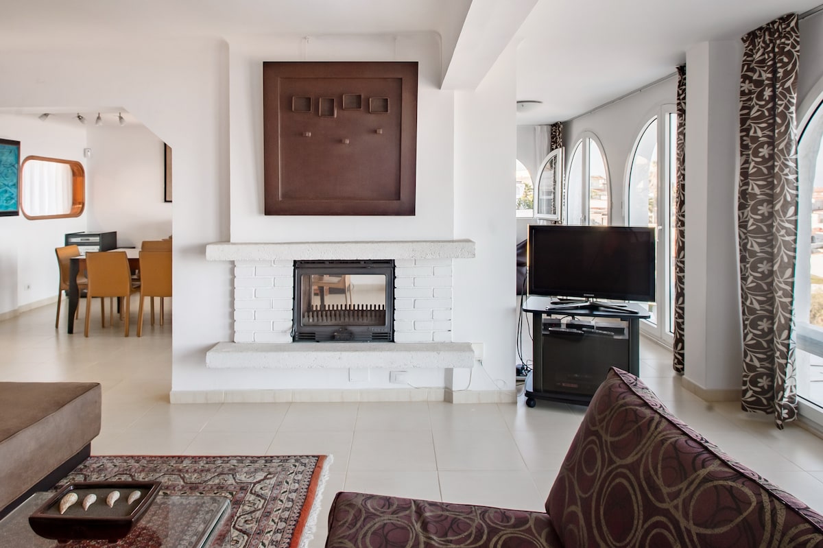 In this spacious home, with terrace and extraordinary views, there is plenty of room for a larger travel group. The terrace is 160 square meters. Here you have sun from morning to evening, and it is a 15-minute walk from the beautiful Anfistranden and restaurants. The pool is common for the residential area and is approx. 100 m. away from the home, where there is also a shop and café. There are 4 large bedrooms with double beds, and one of the bedrooms is a studio with private bathroom and fridge. Free parking available. Air conditioning in all rooms.