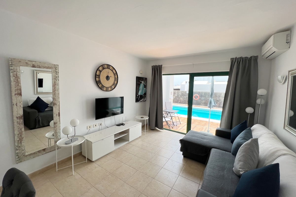 Modern 3 bedroom detached villa within the heart of Puerto Del Carmen that has been fully furnished to a high standard. The property boasts a high level of privacy and includes a private heated swimming pool, sun loungers/dining table/chairs to pool area and an upstairs living area with a sun trap balcony and home bar. A perfect location for families/couples to relax by the pool and be within minutes of the beach and all resort amenities. An excellent starting point to explore the island.