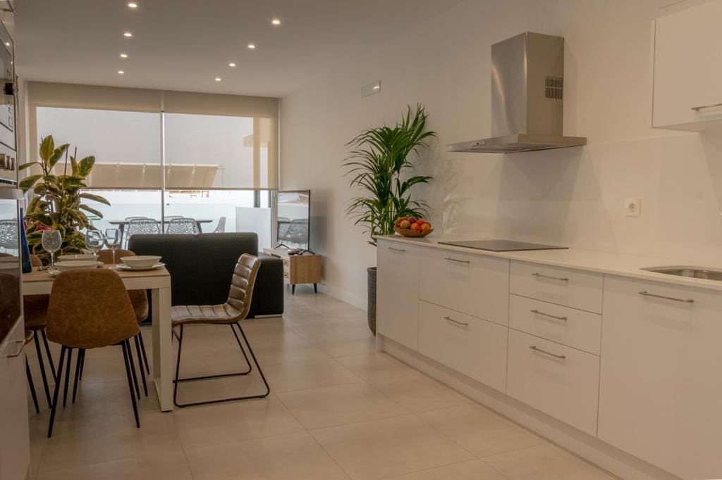 Nuevo apartamento en Puerto del Carmen, ubicado en un complejo muy tranquilo con piscina comunitaria con vistas al mar. Lo mejor de este apartamento es su terraza, dispone de cama redonda para tomar el sol, parrilla exterior para cocinar y una gran mesa para comer o trabajar con vistas al mar. En el interior dispone de salón con smart TV internacional, sofá muy confortable y una pequeña mesa de desayunos. La cocina está totalmente equipada: horno, microondas, frigorífico, sartenes y menaje.