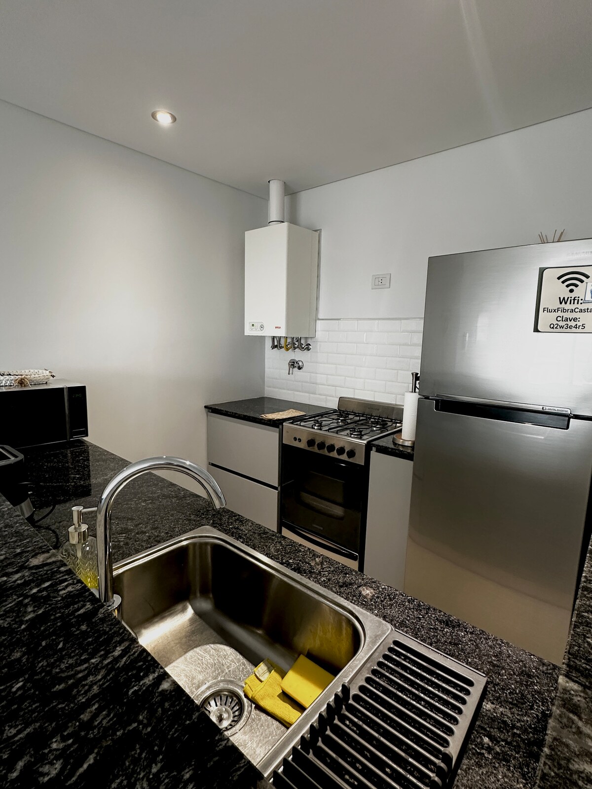 Apartment with 6 years of seniority, very bright, modern, top quality FACING THE SEA (opposite) in a residential area. The entrance to the building is very bright and safe because it has a security system. It has air conditioner, garage, radiant earthen heating, hot water, washer, sink, hair dryer, iron, etc.