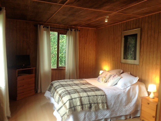 Cabaña de noble y acogedora madera nativa. Desayuno incluido. Despertar y ver atardeceres desde la comodidad de un espacio único. La vista es increible porque está ubicada en la cima de una colina. El entorno natural, hacen de la estadía muy relajante y tranquila. Los espacios integrados, muy amplia, con accesibilidad universal. Cuenta con cocina equipada, cama de dos plazas, vista al mar. Sillón, tv, y un amplio y moderno baño con ducha de pie. La terraza vista al mar es maravillosa!