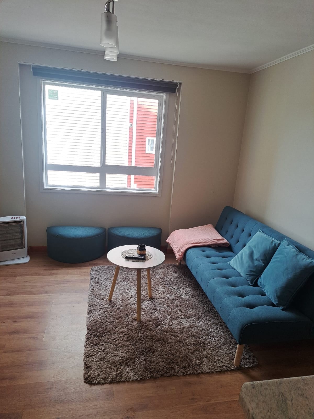 Acogedor depto. en Puerto Montt para 3 people, with 1 bedroom bed 2 seazas, has a futon as an additional bed in living room, equipped kitchen, wifi, Smart TV and bathroom with hygiene items. Located in a quiet but very close section of downtown, you will have quick access to Jumbo supermarkets, Easy, Pharmacies, Domino's Pizza, restaurants, shops, transports and more, making it the ideal starting point for exploring Puerto Montt and the region.