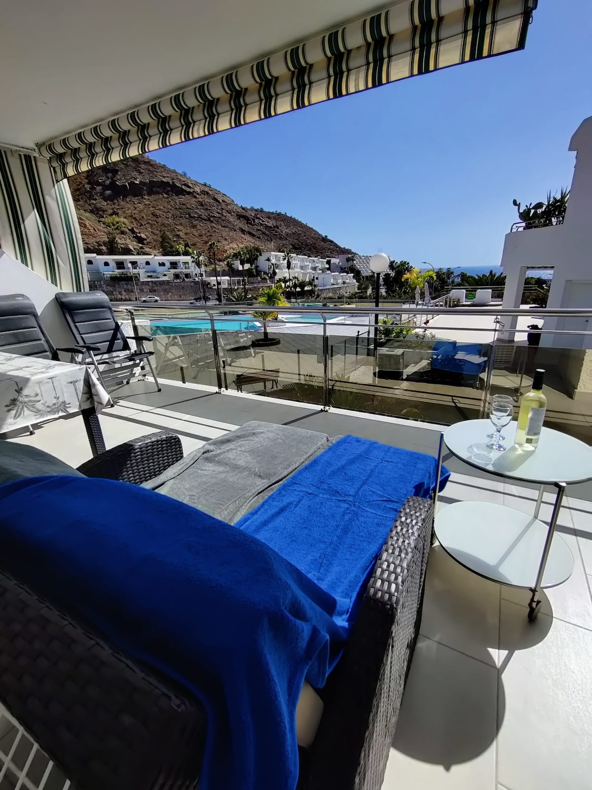 El piso es óptimo porque queda en una posición espectacular, se puede ver casi a 365º las zonas de alrededor, incluida la playa, las montañas, Puerto Rico y Tauro. El Residence es tranquilo y se puede elegir entre relajarse en una jacuzzi exclusiva en la terraza privada del piso o dar un paseo afuera con total vista hacia el mar; en todo caso está súper bien para estar con tu pareja, a solas o con amigos, disfrutando de la instancia en el sur de Gran Canaria!!