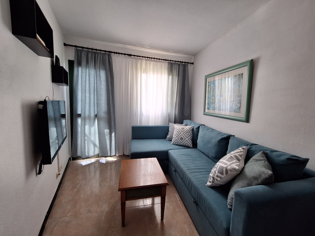 A short walk from the beach, this bright, renovated apartment is fully equipped and ideal for long stays. Great orientation, it feels spacious and fresh all day. It features a terrace with pool views, two 1 x 2 m hotel style beds, a sofa bed, a kitchen with oven and microwave, WiFi, and two Smart TVs. The complex offers a pool, gardens and parking, close to shopping centres, supermarkets nearby and easy bus and taxi links. Perfect for seaside walks, swimming, sunbathing, and exploring the island