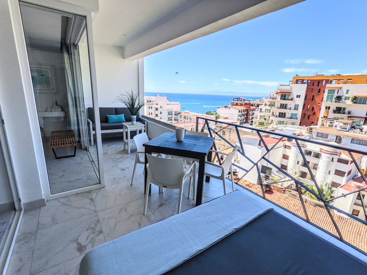 Enjoy breathtaking views from this 14th-floor oceanfront condo Relax on your balcony with a drink, taking in the beauty of the Bay of Banderas, stunning sunsets, and refreshing sea breezes. NOTE: While beside to Sunscape Resort THE CONDO DOESN,T GRANT ACCESS to the resort's pool or common areas. The spacious bedroom has a king and a double bed, and the living area includes a kitchenette, cozy seating, premium TV and stremming, WiFi, The beach is just a 10-minute walk away in the same sidewalk