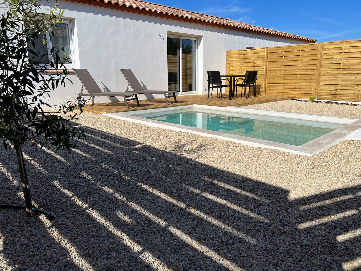 Relax in this unique and quiet accommodation. Quiet villa with private pool located in the Hérault, in the charming hamlet of La Manière, surrounded by garrigues, vineyards and lush countryside where it is possible to ride a mountain bike. Only 30 minutes from the beaches, between Valras and Gruissan, 15 minutes from the Canal du Midi. Close to Saint Chinian (10 min), and 30 min from the mountains where there are many lakes. If the calendar is full, don't hesitate to ask because we have 2 identical villas