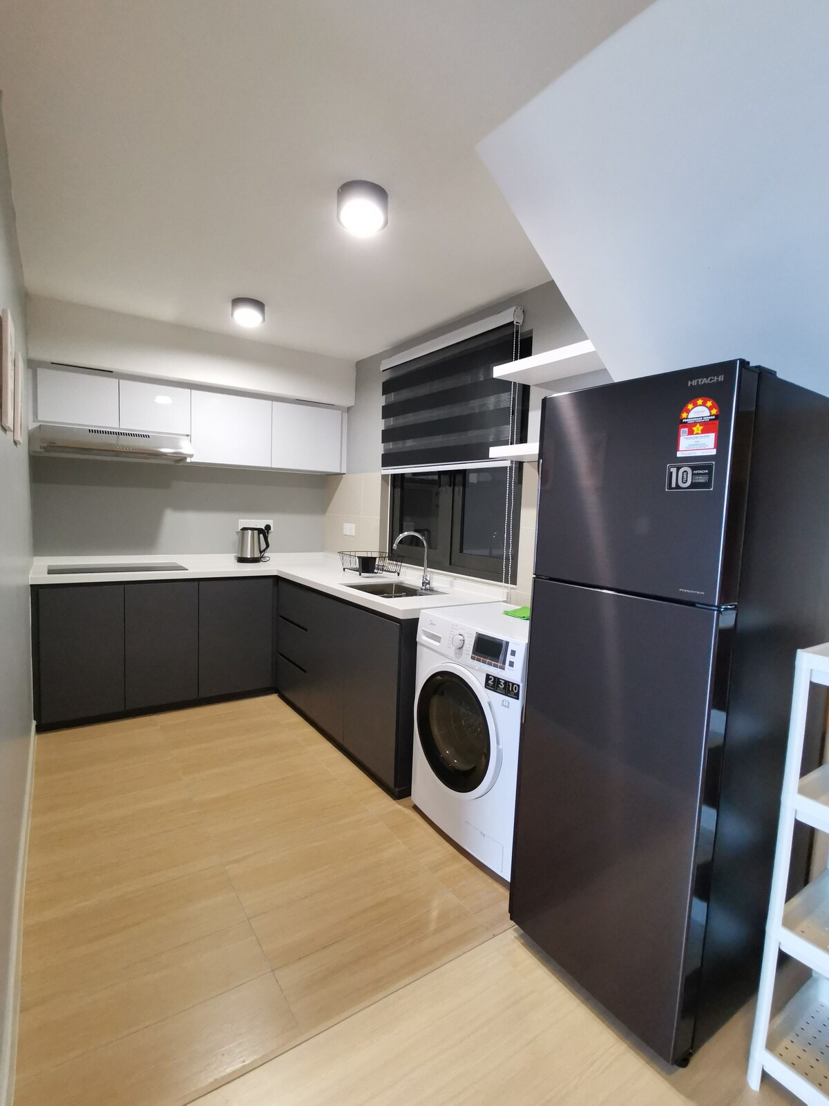 2 Bedroom loft unit industrial style. Fully equipped kitchen. LEGO wall panel, books, Netflix/movies box and PC gaming setup with Race and flight simulator control on large screen. Family area on mezzanine level with projector screen (Netflix/movies etc). 1 Kingsize bed, 1 double deck and 2 foldable mattresses incoming RO water filter + tap filter Infinity pool and very well equipped gym on 6th floor. Right next to Sunway BigBox mall. Direct shuttle CW3 /CW7L from Jurong east MRT (Singapore)