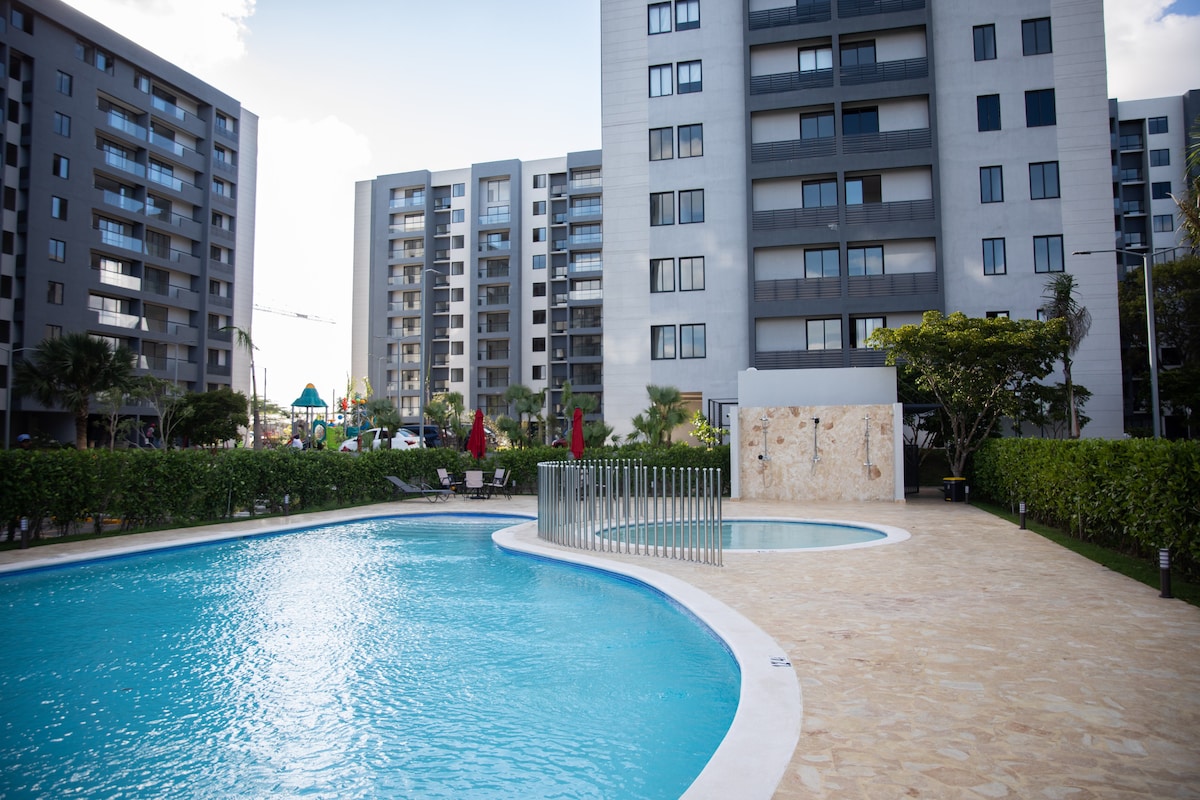 Cozy first-floor apartment overlooking the pool. Have fun with the whole family in this stylish accommodation. The apartment is close to Cibao International Airport. It's a first floor, so you don't have to climb stairs.