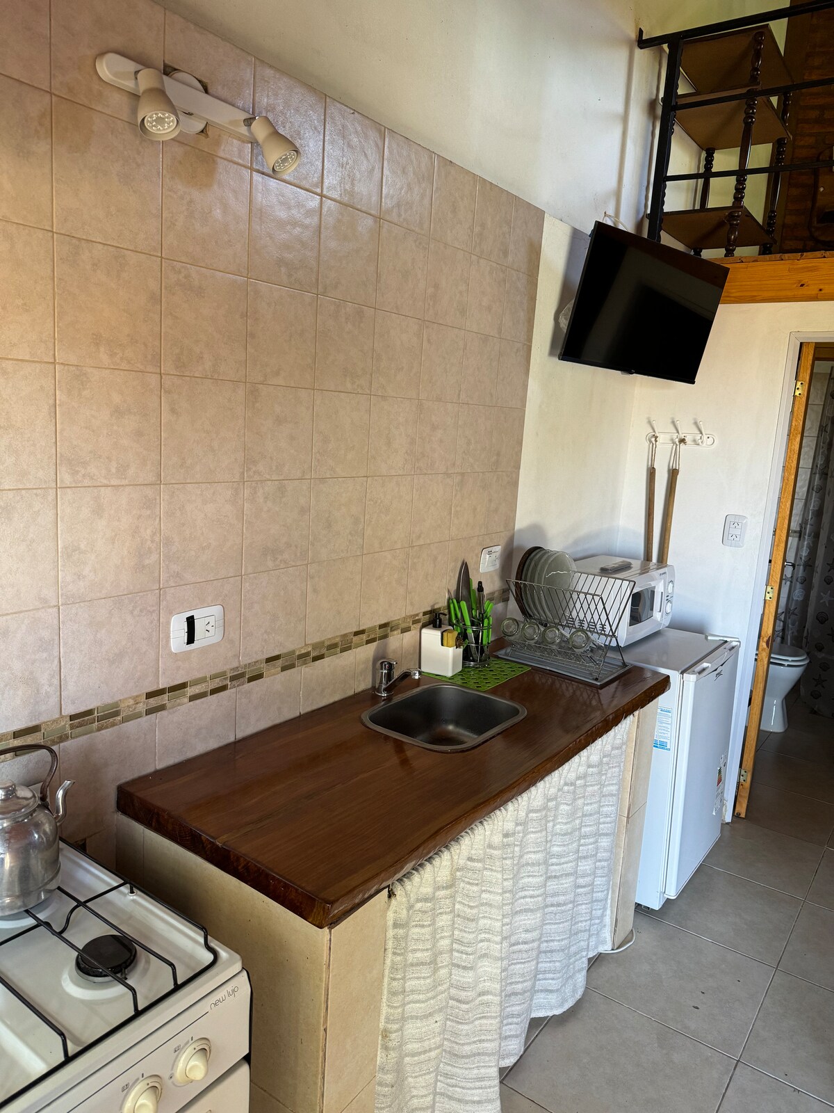 Monoambiente con cama doble y baño privado En la cocina dispone de microondas, pava electrica, licuadora, y utencillos básicos para calentar o refrigerarlos alimentos. En el exterior PILETA, SOLARIUM, quincho con mesa y reposeras. Estacionamiento dentro de la propiedad. Para quienes buscan descansar en un espacio ubicado estrategicamente para caminatas, running, ciclismo, etc Cerca de atractivos puntos turísticos