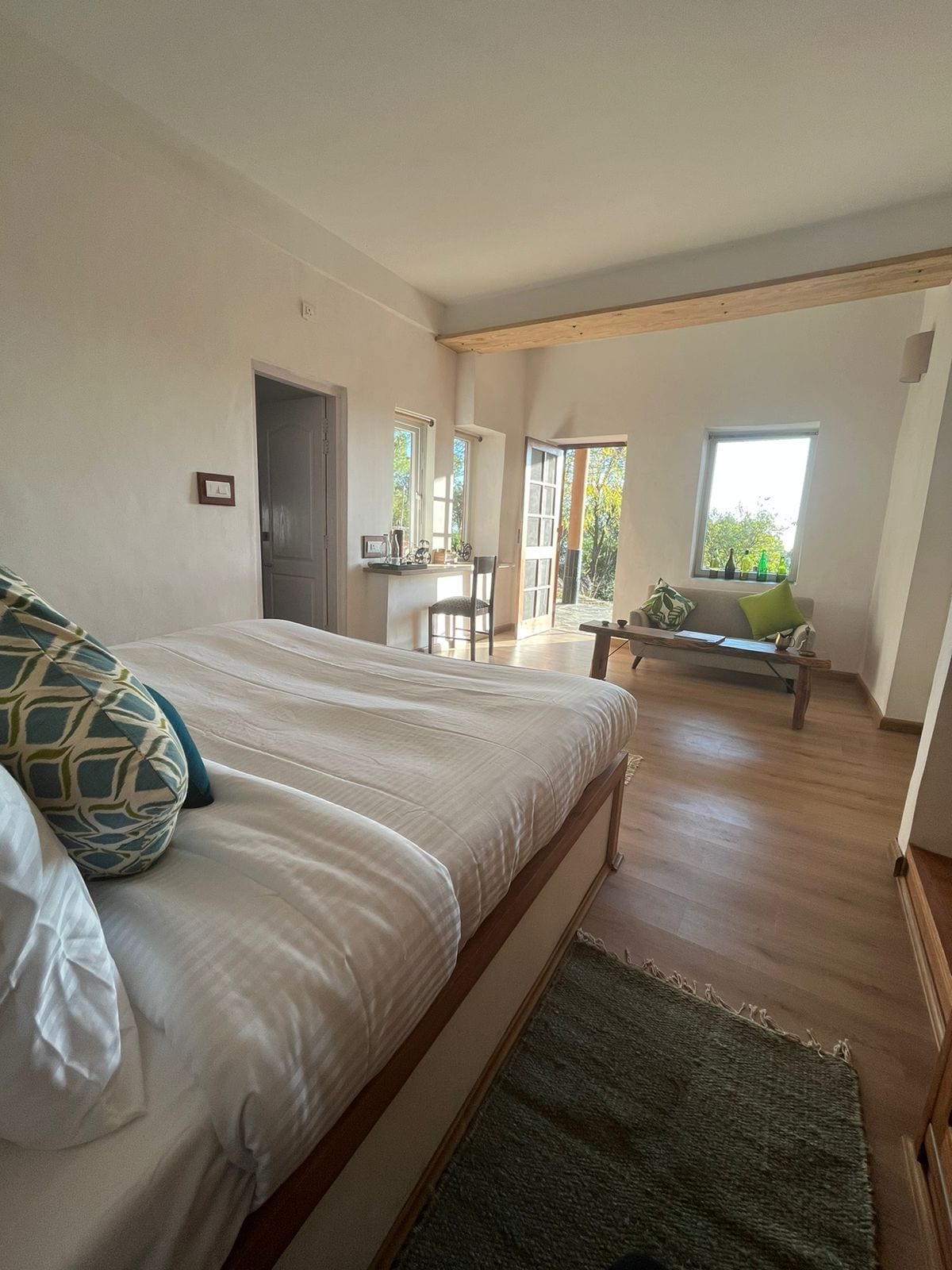 Our homely 5-bedroom nature stay offers cozy, well-furnished rooms with large windows that open up to breathtaking views of the mountains and forest. ✔️ 5 Comfortable Bedrooms ✔️ All Rooms with balcony and mountain view ✔️ Garden & Outdoor Seating ✔️ Free Parking ✔️ High-Speed WiFi