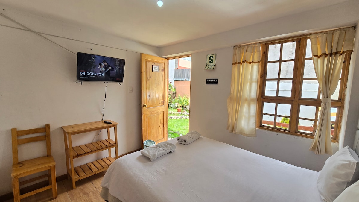 If you are traveling with a friend and need to share a room but each in your own bed, and you are also looking for large spaces, away from the noise and with a spectacular view of the city, with breakfast included and a garage, then this is your ideal space, 6 minutes by taxi from the center of Puno's main square. Make yourself at home and meet traveling people.