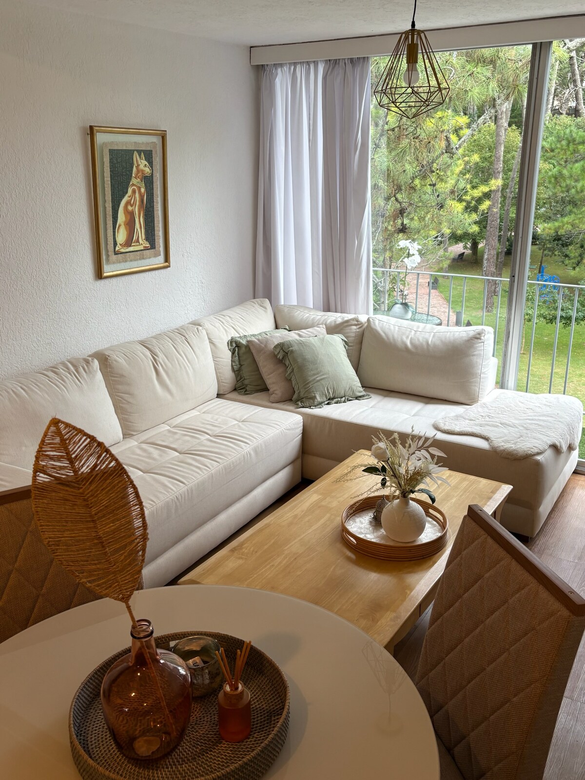 Precioso apartamento con vistas al mar a 120 metros de la playa, 1 dormitorio, living, baño, cocina y balcon, totalmente equipado y super comodo. El edificio cuenta con piscina climatizada interior con un jacuzzi , gimnasio, recepcion, dos piscinas exteriores y parrillero , un parrillero en la terraza con vista a la playa Mansa y la Brava y tambien parking. En una zona llena de restaurantes, mercados y mas. 😊