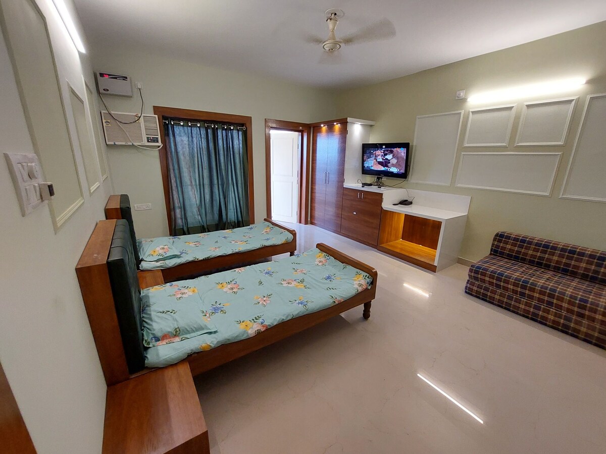 500 Sq. ft. Independent House entirely to Guests. A fully furnished 1-BHK property inside a reputed Gated Community (in close proximity to Beach) with a serene environment & perfect ambience. The Property is equipped with all kinds of modern amenities & facilities. There's a dedicated Caretaker to take care of Guest's requirements'. Lots of outdoor spaces within the complex - Beach Resort, Swimming Pool, Restaurant, Garden & Play Area etc. It's a Near Perfect Place - A HOME away from HOME !