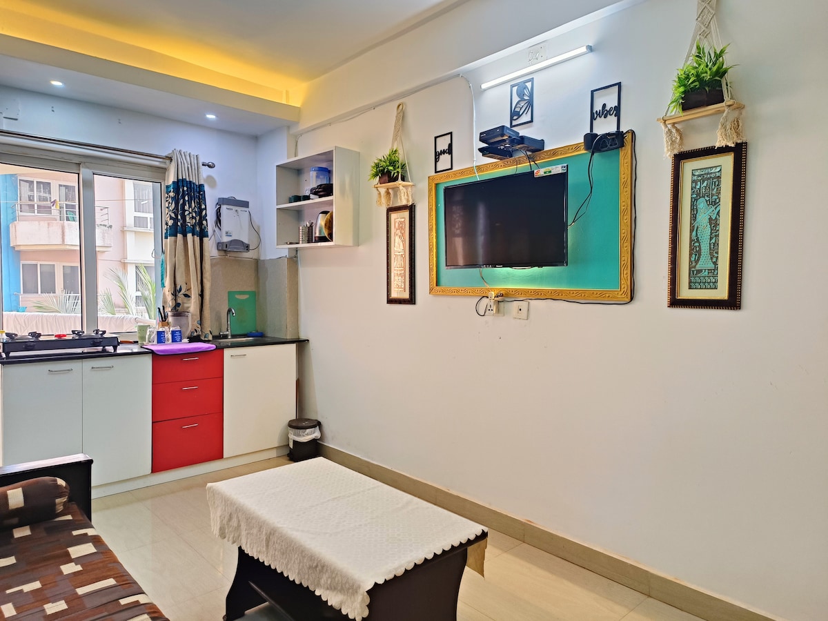 Located in the coastal area of Puri, our aesthetically designed 1BHK studio is just a walk from the famous Lighthouse Beach, yet tucked away in a peaceful spot. The gated community offers an array of amenities including children’s playground, pool, 24/7 security & parking, ensuring a comfortable stay. With cafes, restaurants, and grocery stores within walking distance, it’s the ideal vacation home. Our studio features a living room, functional kitchen, balcony and air conditioning bedroom.