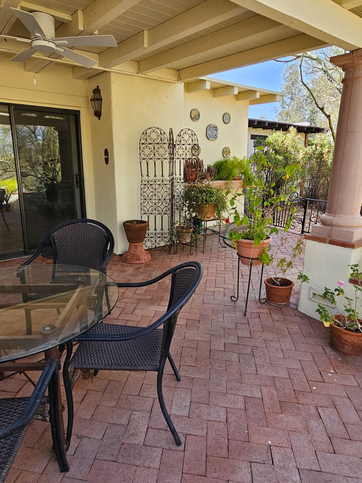Whether you're seeking a peaceful getaway or a vacation filled with exploration, this serene vacation home is ready for you! The home is lovingly maintained with comfy beds & sofas, soft linens, fast Wi-Fi service, dedicated work space, Smart TVs, a well-appointed kitchen & ample space for guests. The beautiful backyard has shaded sitting areas, flowering bushes & citrus trees. Located in a quiet neighborhood amongst mountain views, trails, 81-holes of golf, shopping, dining & entertainment.