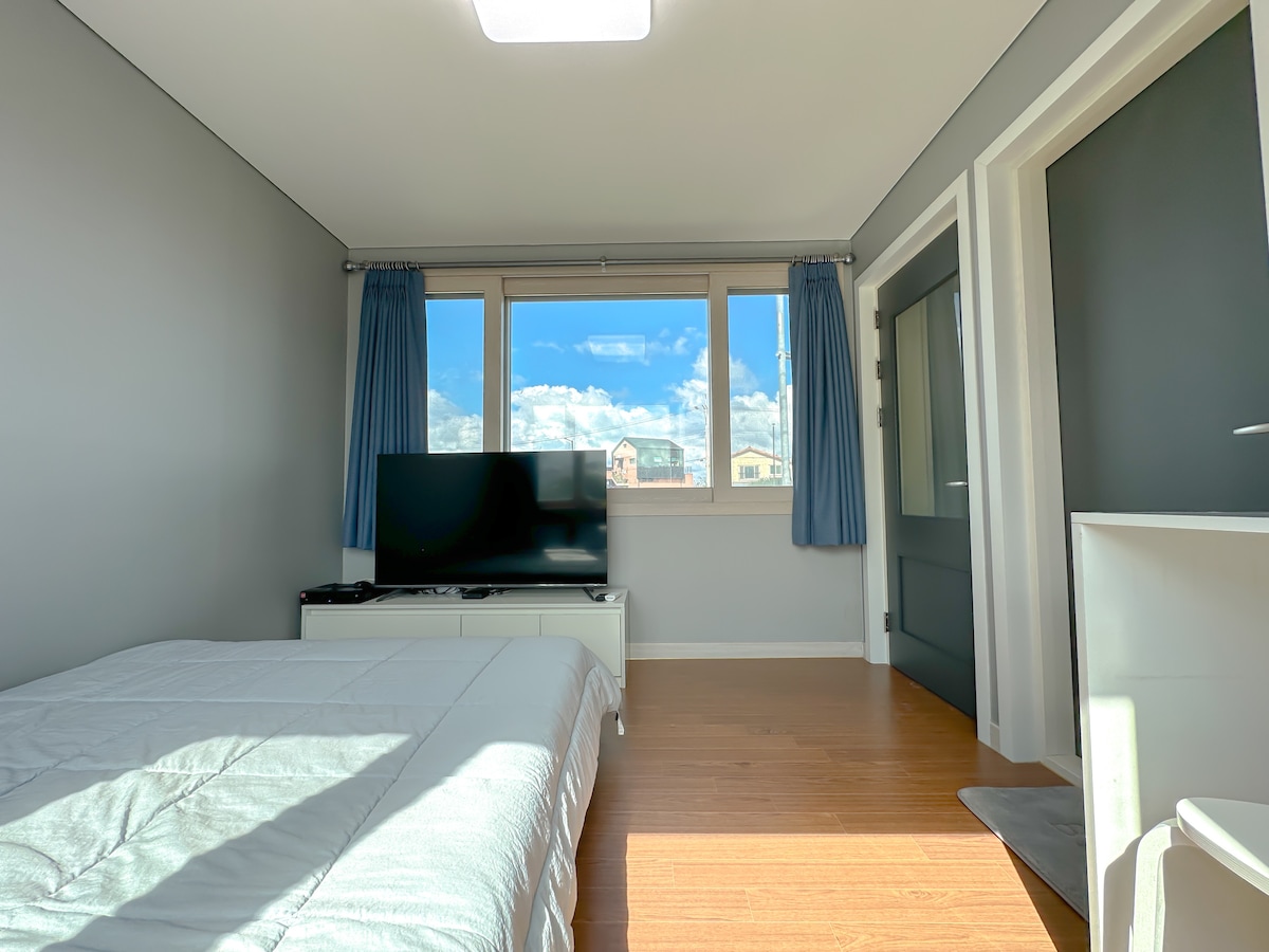 Hello ~ This is the waves. The waves are brand new apartments with clean facilities and glass! The windows that are made of glass can't be covered at night and have a wonderful Jeju sea! It's great to hear the sea during the day and watch the water! The rooftop is always open, so you can always enjoy Hallasan and the airport view ~ Right in front of you, the street of memories, and the street of the breakwater are great for a stroll while watching the sea! It is also very close to the airport (10 minutes by car), Iho Taewoo Beach is also nearby ~ (You can see Iho Taewoo Beach through the window) There are grocery stores (5 minutes on foot) and convenience stores (2 minutes on foot) around the accommodation. There are many restaurants (Sunok, Doduban Branch, Lighthouse and Badang, Haenyeo's House, The Abalone, etc.). From the accommodation, you can enjoy the sea, Hallasan + plane view at once, and have a good trip to Jeju. ^ ^ â Netflix available! (Personal ID required)
