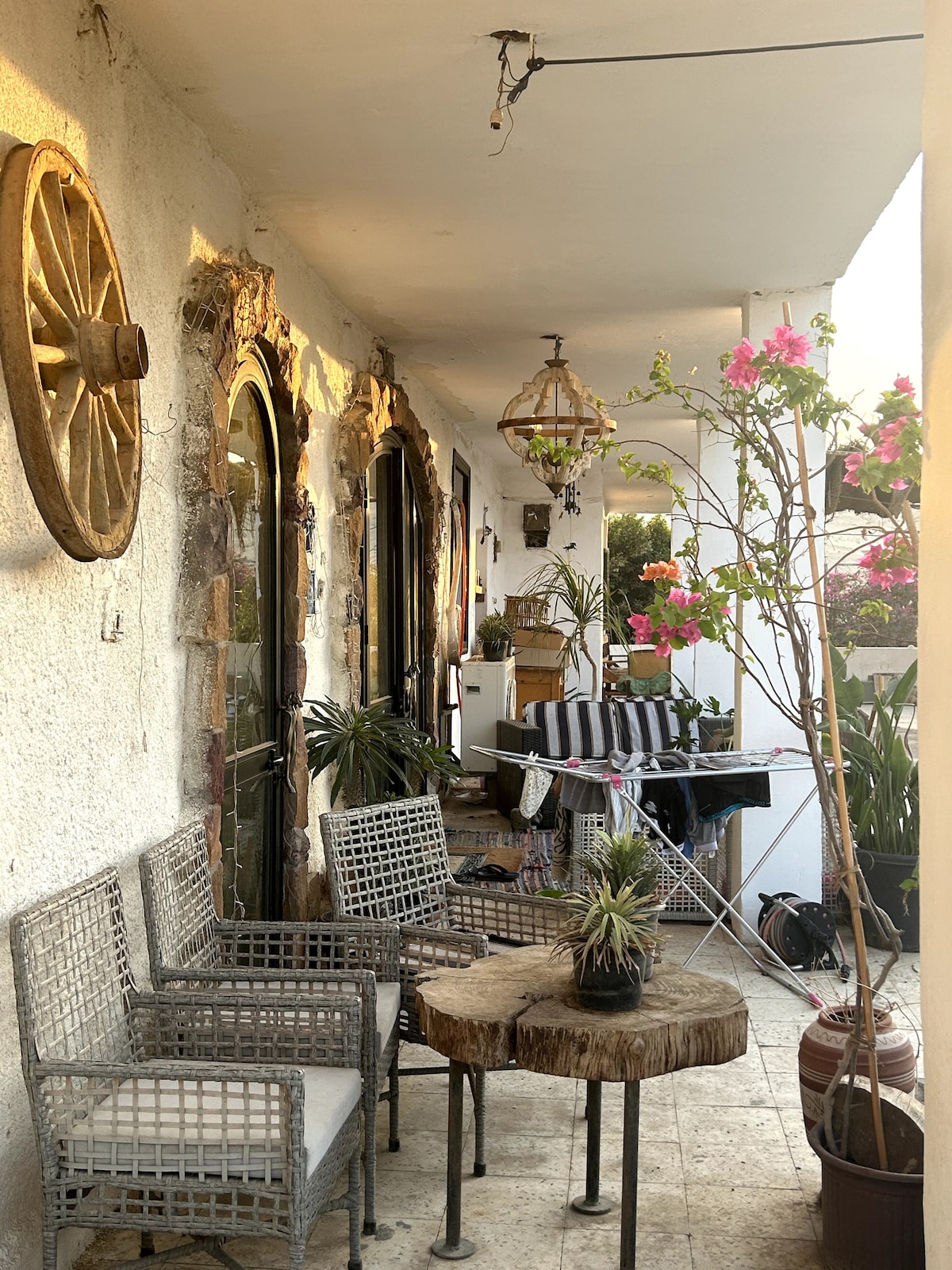Stay authentically in a walkable Cairo neighborhood known for its safety, greenery, and great places to eat. Sustainably built and styled with antique and vintage pieces and materials, this romantic cottage-style studio includes a bedroom with a kitchenette and a bathroom with a double walk-in shower, as well as an office space accessible from the garden. The magical shared garden features lounging & dining areas, a hammock, an outdoor kitchen with a pizza oven, and fountains to set the mood